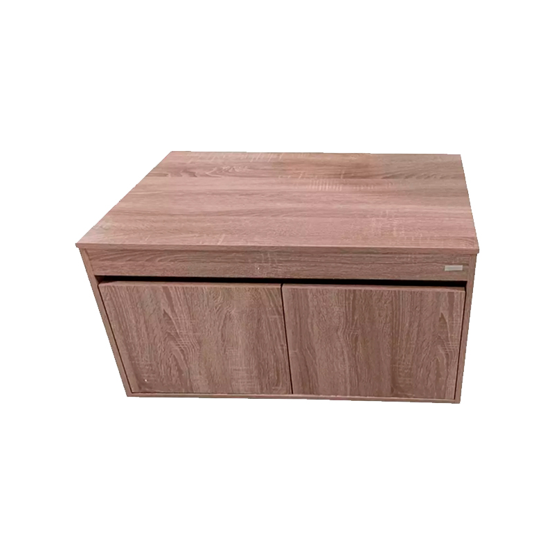 Mueble de Baño 2 cajones (para bacha de apoyo, no incluida) Interior y exterior de melamina. Espesor: 15mm Riel estándar con función soft-close Tornillos de fijación a la pared Packing: totalmente ensamblado 60*46*52 y 80*46*52. En blanco, oak y gris.