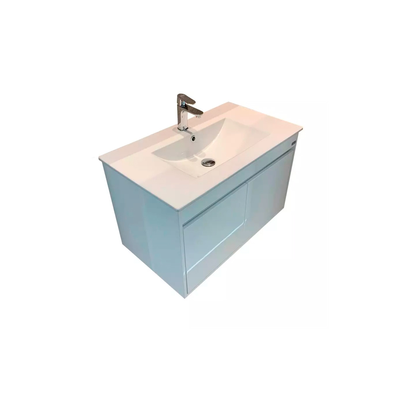 Mueble de baño dos puertas.Mesada de loza blanca incluida. Interior y exterior de melamina espesor 15mm. Bisagras ocultas standar con función soft close tornillos de fijacion a la pared. Viene en dos medidas 60*46*52 y 80*46*52.