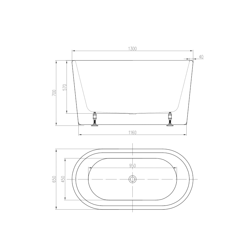 Bañera exenta de acrílico con desague tipo pop up 1700*800*580.
